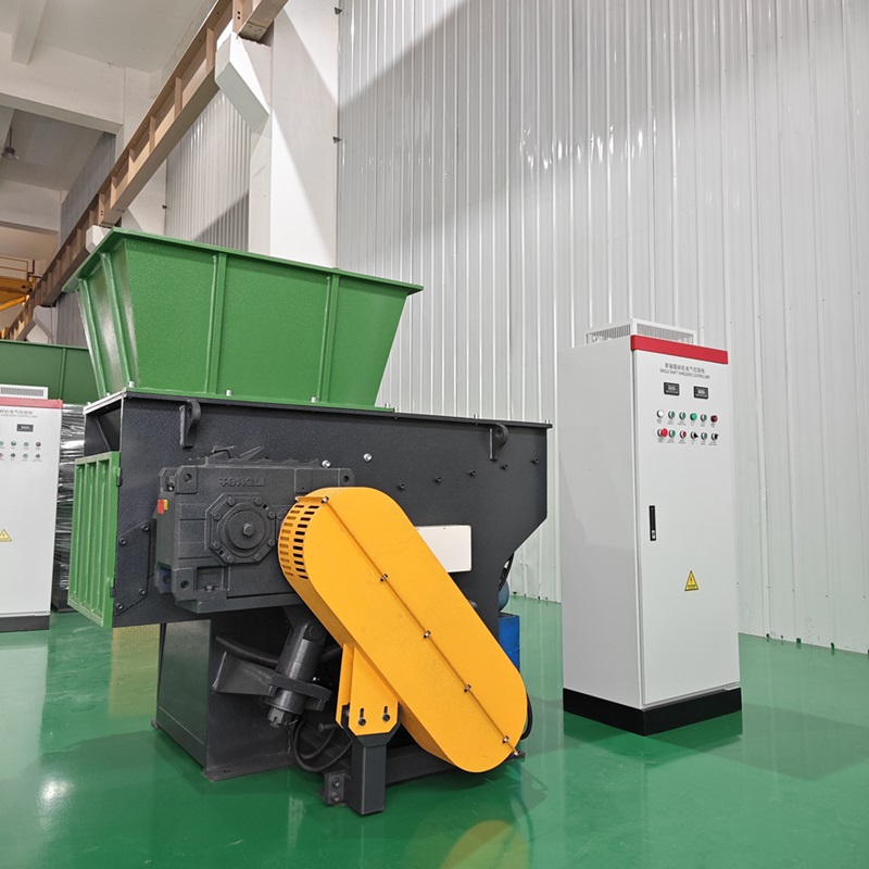 The single shaft shredder consists of a motor, a hard-toothed reducer, a rotating blade shaft, imported moving blades, fixed blades, a frame, a base, a box, a hydraulic cylinder, an oil pump and other main components.